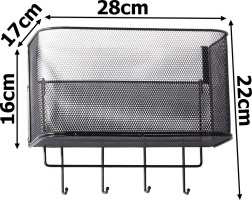 Šis metāla piekaramais grozs ir ne tikai praktisks, bet arī stilīgs. Tas ir ietilpīgs un ļauj uzglabāt dažādus priekšmetus, sākot no virtuves piederumiem līdz higiēnas lietām. 4 papildu āķus var izmantot atslēgām, dvieļiem vai rokassomām.