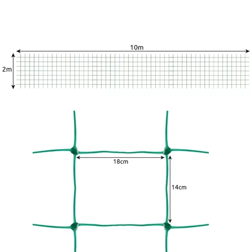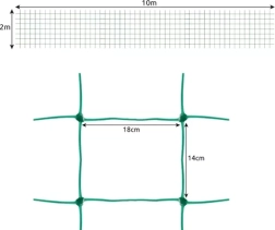 Praktisks zaļš GARDLOV audzēšanas tīkls ar izmēru 2 × 10 m nodrošina uzticamu atbalstu popīnlieliem augiem, piemēram, gurķiem, tomātiem, zirņiem un pupām. Izturīgs PP materiāls ar pastiprinātiem savienojumiem garantē ilgu kalpošanas laiku, bet lielie acu izmēri atvieglo laistīšanu, apgriešanu un ražas novākšanu. Zaļā krāsa neuzkrītoši saplūst ar stādījumiem, un tīklu var viegli uzstādīt gan vertikāli, gan horizontāli.