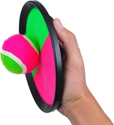 Aizraujoša ģimenes spēle ar bumbiņu un līplenti sniedz aktīvas kustības gan ārā, gan mājās. Komplektā ir 2 apaļas paletes ar regulējamu siksniņu un viegla bumbiņa košās krāsās. Viegla noķeršana ar līplenti, viegls un pārnēsājams dizains un pievilcīgs rozā–zaļš noformējums iepriecinās gan bērnus, gan pieaugušos.