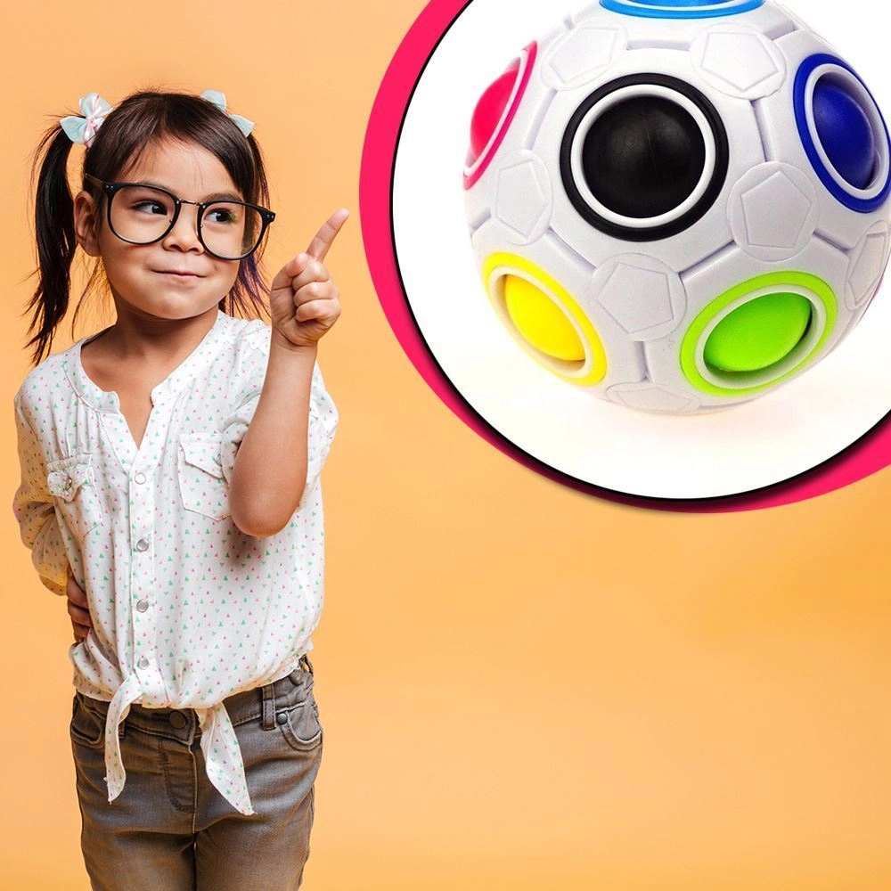 Galvaslauzēja bumba Rainbow Ball ir gudra un aizraujoša rotaļlieta, kas darbojas pēc bīdāmo galvaslauzēju principa. Jūsu uzdevums ir pārvietot bumbiņas starp atverēm un saskaņot tās ar krāsainajiem gredzeniem. Viena atvere bez krāsaina gredzena paliek tukša un kalpo kā pagaidu vieta pārvietošanai.