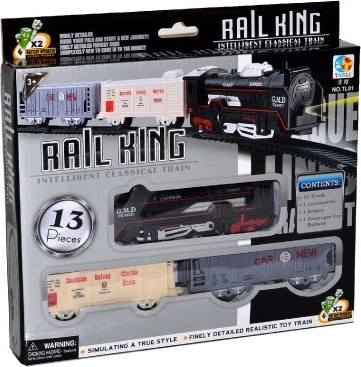 Izbaudiet klasiskā dzelzceļa atmosfēru ar šo stilīgo bateriju darbināmo vilciena komplektu. Komplektā ietilpst lokomotīve, divi vagoni un sliedes, kas veido apli ar 67 cm diametru (sliežu trases garums 210 cm). Vilciens ir aprīkots ar gaismas un skaņas efektiem vēl reālistiskākai pieredzei.