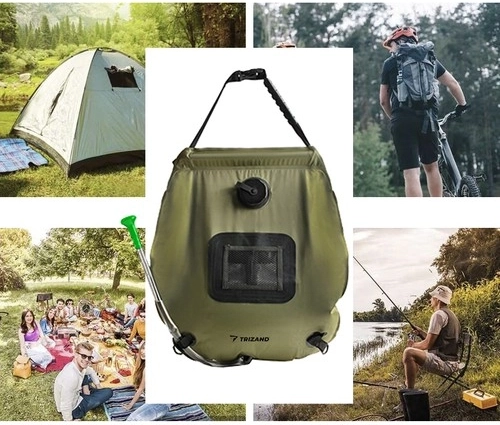 Pateicoties izturīgam rokturim, sprādzītei un stiprinājumiem, dušu viegli piekarināt pie zara, āķa vai stieņa. Komplektā ir apmēram 40 cm šļūtene un praktisks dušas uzgalis vienmērīgai strūklai. Materiāli PVC, poliesters un izturīgas plastmasas (ABS, POM, PET, neilons) nodrošina ilgu kalpošanas laiku.