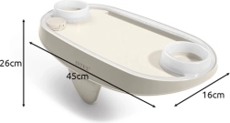 Izstrādāts maksimālai praktiskumam un drošībai: 2 dzērienu turētāji droši notur krūzes, glāzes un pudeles bez apgāšanās riska, bet platforma planšetdatoram vai viedtālrunim ļauj ērti skatīties iecienīto saturu pilnīgā komfortā. Barošanu nodrošina 2 CR2032 baterijas (iekļautas komplektā), tāpēc nav vajadzīgi kabeļi vai sarežģīta uzstādīšana.