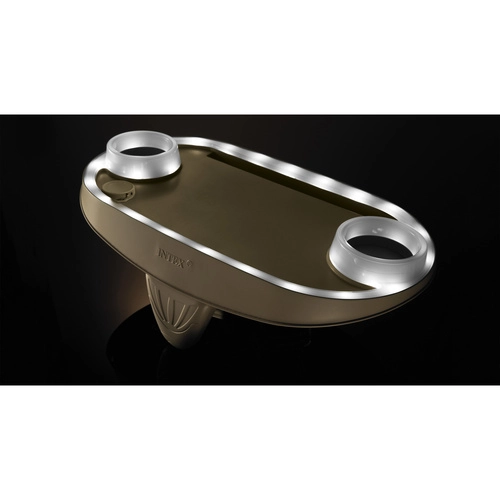 Plaukts ar LED apgaismojumu SPA INTEX ir gudrs piederums, kas paaugstina komfortu atpūtas brīžos. To viegli uzliek uz džakuzi malas, un uzreiz iegūstat stabilu vietu dzērieniem un elektronikai. Maigā LED gaisma rada patīkamu noskaņu un padara katru vakaru burbuļvannā vēl patīkamāku.