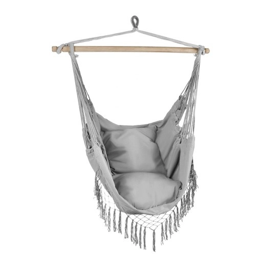 Izbaudiet atpūtu mājās vai ārā ar karājamo brazīliešu krēslu Gardlov elegantā pelēkā krāsā. Kokvilnas un poliestera kombinācija nodrošina elpojamību un izturību, savukārt koka šķērslata garantē stabilitāti un ērtu sēdpozīciju. Komplektā ietilpst 2 mīksti spilveni maksimālam komfortam. Ideāli piemērots terasēm, balkoniem un dārziem.