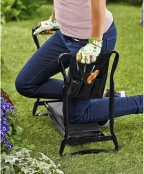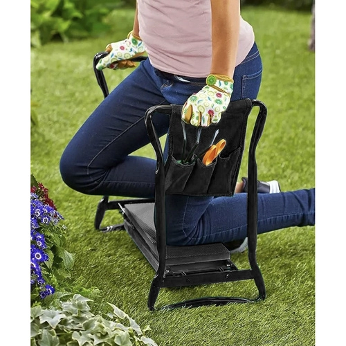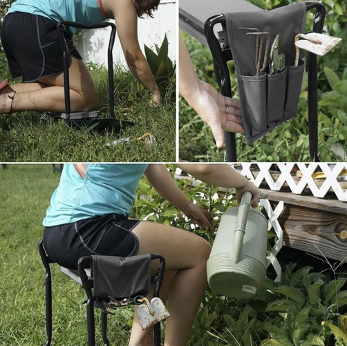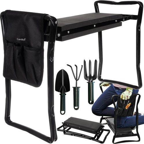 Meklējat veidu, kā atvieglot darbu dobēs un vienlaikus turēt visu pa rokai? Dārza ceļgals un sēdeklis GARDLOV apvieno komfortu, stabilitāti un funkcionalitāti vienā. Izturīgais dzelzs rāmis ar platām kājām nodrošina drošību arī uz nelīdzenas virsmas, savukārt biezs EVA putu polsterējums mazina spiedienu uz ceļiem un palielina ērtumu ilgstošas dārzkopības laikā.