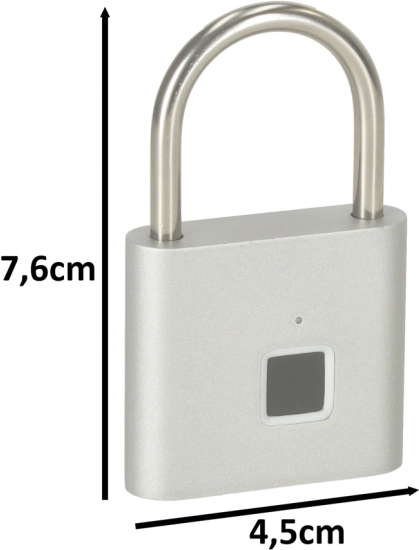 Piekļuvi pārvaldīt ir vienkārši: saglabājiet līdz 10 pirkstu nospiedumiem, kurus var jebkurā laikā pievienot vai dzēst. Iebūvētais 3,7 V akumulators nodrošina darbību vairāku mēnešu garumā, un uzlāde ir ērta, izmantojot komplektā iekļauto micro‑USB kabeli.