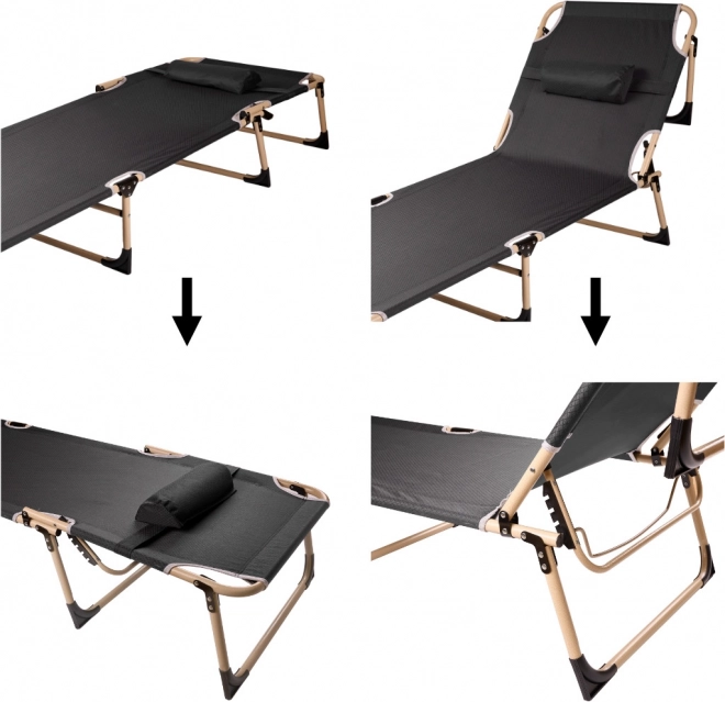 Ērts saliekamais kempinga guļamkrēsls ar matraci tumši pelēkā krāsā atpūtai mājās un ceļā. Tas piedāvā 4 līmeņu atzveltnes regulēšanu, izturīgu tērauda rāmi ar pulverkrāsojumu un noturīgu Oxford 1200D pārklājumu. Pēc salocīšanas to ir viegli pārnēsāt un tas ietilpst automašīnā, ideāli piemērots kempingam, terasei un kā papildu gulta viesiem.