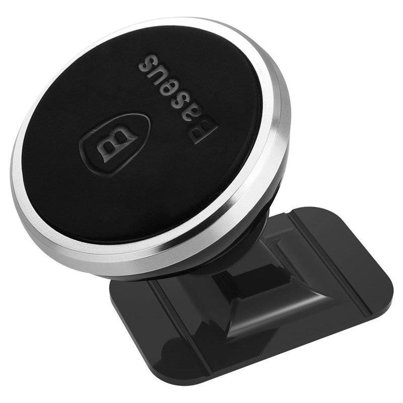 Universāls magnētiskais BASEUS turētājs drošai tālruņa stiprināšanai automašīnā vai uz galda. Tas piedāvā spēcīgu magnētisku fiksāciju, 360° pagriežamu locītavu ideālam skatīšanās leņķim un elegantu alumīnija dizainu sudraba krāsā. Pateicoties kompaktajiem izmēriem un pašlīmējošai montāžai, tas stingri turas uz paneļa, griestiem vai jebkuras gludas virsmas.