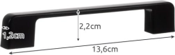 Produkta specifikācijās ietilpst melna matēta krāsa, alumīnija materiāls un divi montāžas caurumi ar 96 mm atstarpi. Izmēri ir 10,4 × 2,2 × 1,2 cm, kas nodrošina izturīgu un stabilu konstrukciju ilgam kalpošanas laikam.