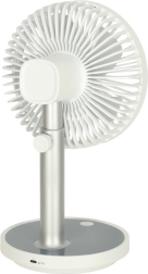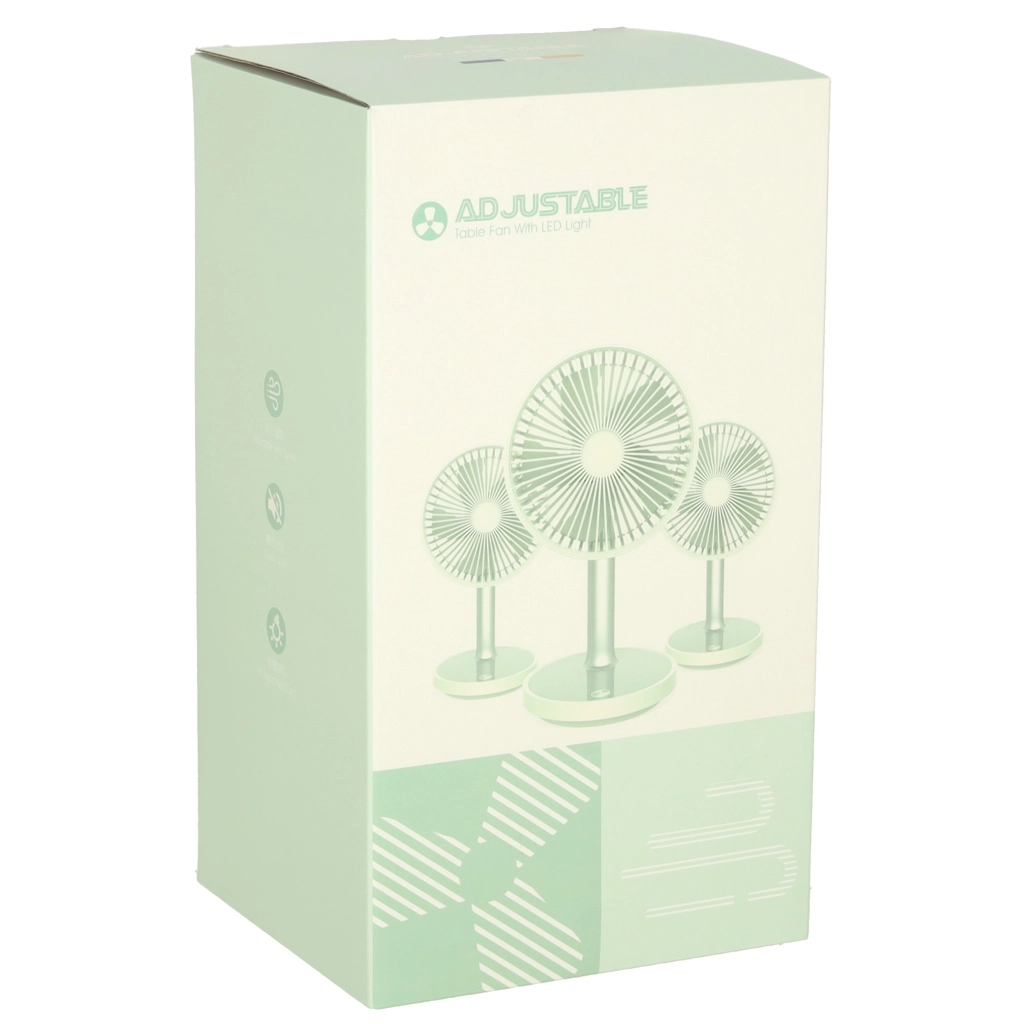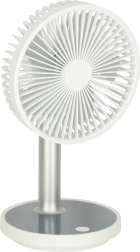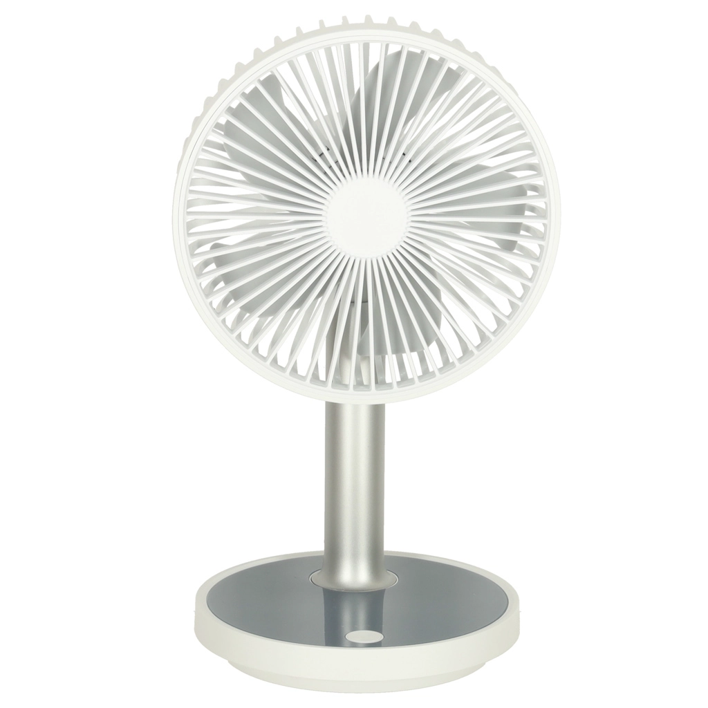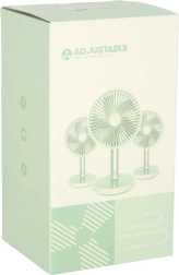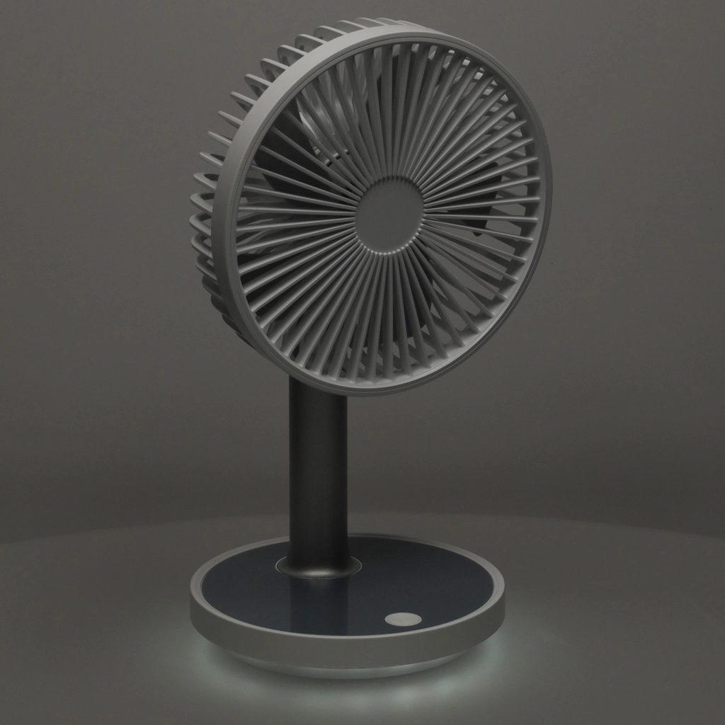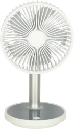 Kompakts un elegants galda ventilators ar uzlādējamu bateriju piedāvā 4 jaudas līmeņus, klusu darbību un pamatnes LED apgaismojumu. Pateicoties barošanai caur USB‑C un augstuma regulēšanai 30–38 cm, tas ir ideāli piemērots rakstāmgaldam, nakts skapītim un arī bērnu istabai. Ar vienu uzlādi darbojas līdz pat 7 stundām.