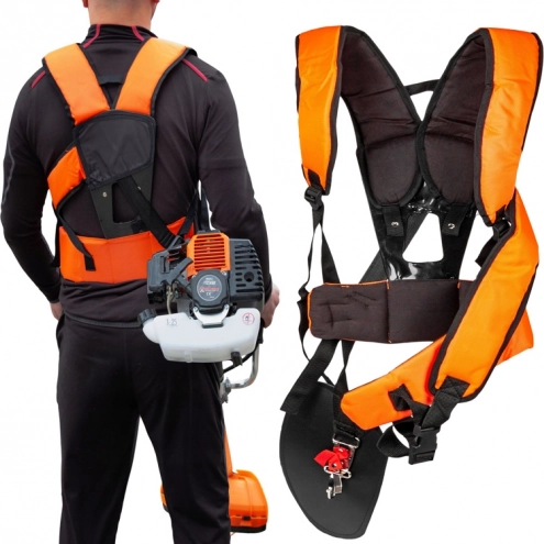 Zāles pļāvēja siksnu sistēma nodrošina lietošanas komfortu un drošību, pateicoties regulējamām siksnām. Izgatavota no augstas kvalitātes materiāliem, tā garantē komfortu ilgstošas lietošanas laikā. Ergonomiskais dizains vienmērīgi sadala svaru, kas mazina muguras un plecu nogurumu.