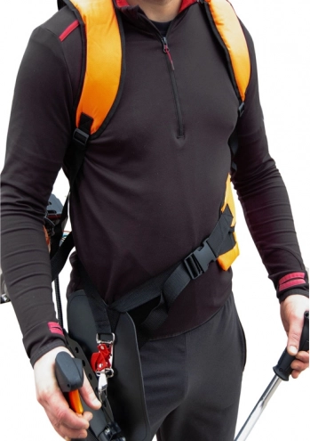 Platas siksnas un jostas daļa ar mīkstu polsterējumu palielina komfortu. Ātrās atvienošanas aizdare ar drošības atbloķēšanu ir funkcionāls risinājums ērtai un drošai lietošanai.