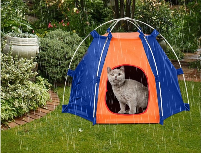 Praktiskā telts suņiem un kaķiem nodrošina ērtu patvērumu atpūtai un ceļojumos. Izturīgais audums aizsargā pret lietu un mitrumu, vienlaikus sniedzot patīkamu ēnu no saules, tāpēc mīlulis paliek sausumā un komfortā. Noapaļotā ieeja atvieglo iekļūšanu, bet gaisīgā konstrukcija veicina gaisa cirkulāciju.