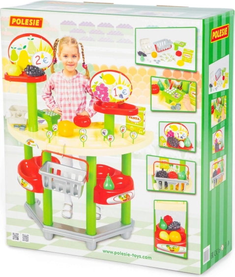Ienirstiet fantāzijas pasaulē ar Polesie supermārketa spēļu komplektu. Pateicoties reālistiskajiem piederumiem, piemēram, cenu zīmēm, monētām un dažādiem preču veidiem, bērni viegli radīs īsta veikala atmosfēru. Lete ar nodalījumiem un kase veicina dabisku lomu spēli – pārdevējs, pircējs, kasieris – un attīsta sociālo mijiedarbību.