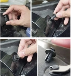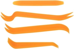 Komplektā iekļauti 4 plastmasas izvirzītāji un metāla izvilcējs ar ergonomisku rokturi ātrai un drošai klipu izņemšanai bez saskrāpēšanas.