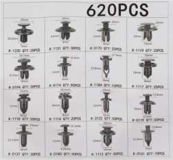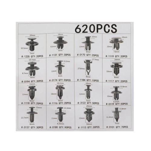 Meklējat praktisku risinājumu montāžai un remontam auto salonā un ārpusē? Šis universālais klipu komplekts piedāvā bagātīgu 620 vienību izvēli biežākajiem darbiem: durvju apšuvumi, riteņu arkas, bagāžnieka ielikņi, grīdas, buferi un līstes. Izturīgais polipropilēns (PP) labi panes mitrumu, temperatūras svārstības un mehānisku slodzi, nodrošinot, ka klipi turas stingri un ilgi.