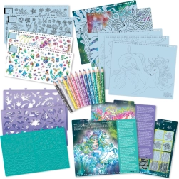 Iepakojumā atradīsiet daudzveidīgu mākslas piederumu un aksesuāru klāstu, ar kuriem bērni var pārzīmēt, krāsot, zīmēt un līmēt. Skaidras soli pa solim pamācības palīdz ātri apgūt jaunas tehnikas un radīt skaistus attēlus, iedvesmojoties no maģiskās dzīvnieku pasaules.