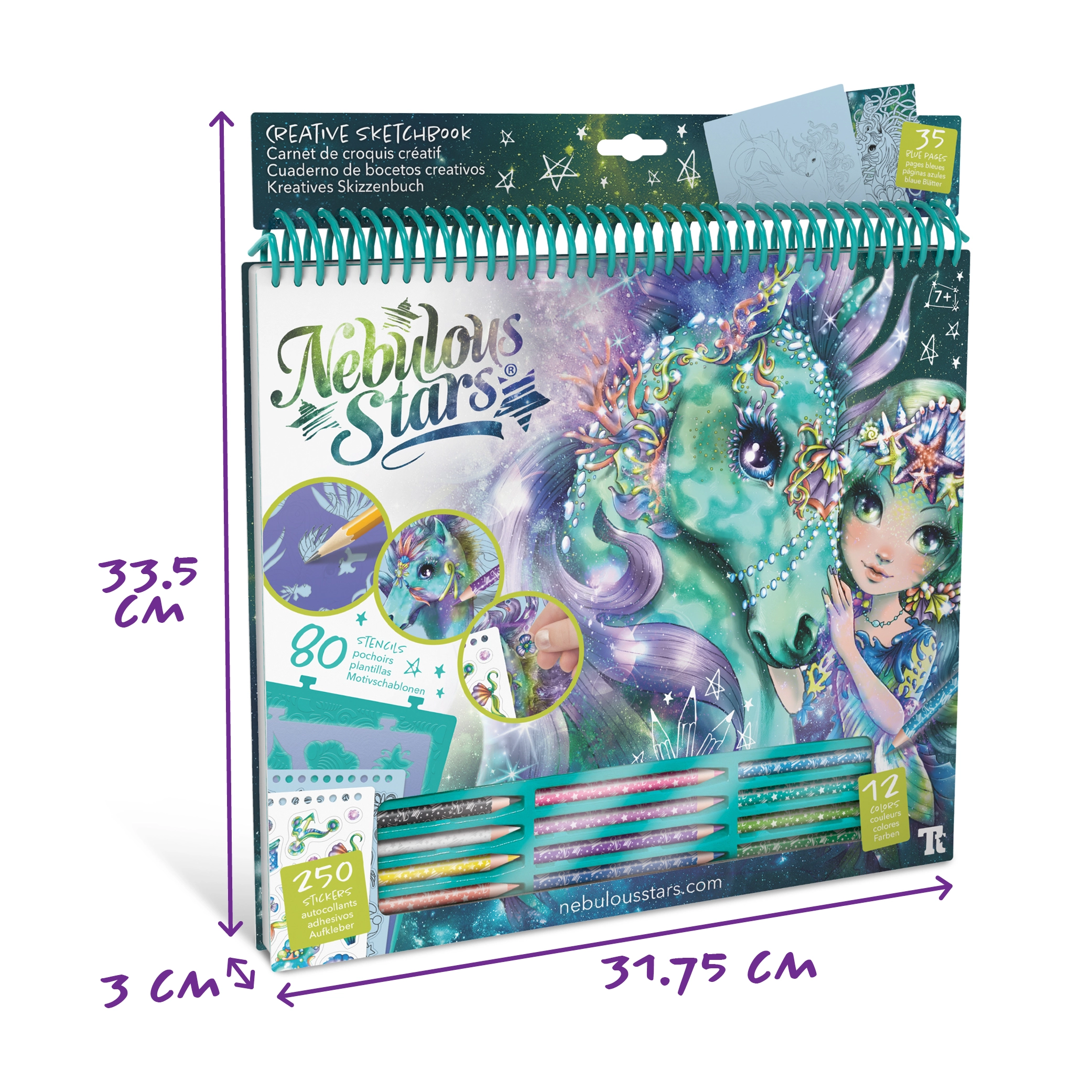 Atklājiet burvīgo NEBULOUS STARS pasauli ar radošo skiču grāmatu zaļā krāsā. Komplektā ir viss radošam darbam – no 250 uzlīmēm un 12 krītiņiem līdz pat 80 šabloniem un 35 attēlu lapām. Pateicoties pamācībām 12 zīmēšanas tehnikās, bērni attīsta iztēli, sīkās motorikas prasmes un krāsu izjūtu. Ideāla dāvana mazajām māksliniecēm no 7 gadu vecuma.