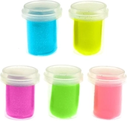 Spīdīgs modelēšanas materiāls bērniem no 3 gadu vecuma sniedz stundām ilgu radošumu un izklaidi. Iepakojumā atradīsiet 5 trauciņus ar gliteru krāsām (rozā, dzeltena, zila, zaļa, violeta), kuras var jaukt un veidot jaunus toņus. Praktiskie trauciņi uztur masu mīkstu un viegli veidojamu turpmākai radošai darbošanai.
