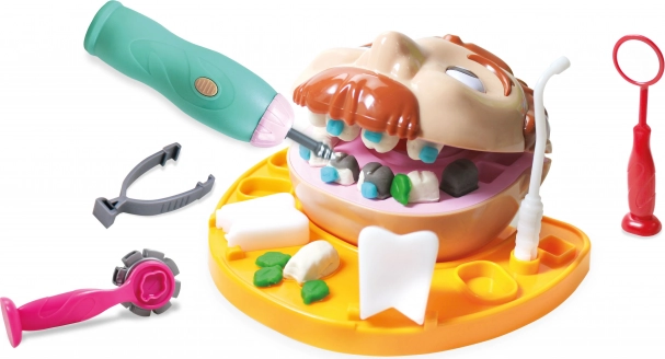 Spēlē zobārstu un atklāj zobu kopšanas pasauli ar radošo komplektu mazajiem dentistiem. Ar šo komplektu bērni var modelēt jaunus zobiņus, veidot breketes un ar elektrisko zobu urbīti izurbt kariesu. Spēles laikā viņi arī iemācīsies, kā pareizi tīrīt zobus un rūpēties par smaidu.
