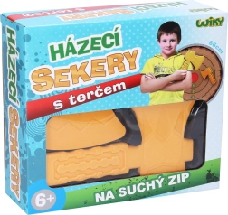 1× mērķis ar piesūcekņiem, 2× mešanas cirvis ar lipekļlenti