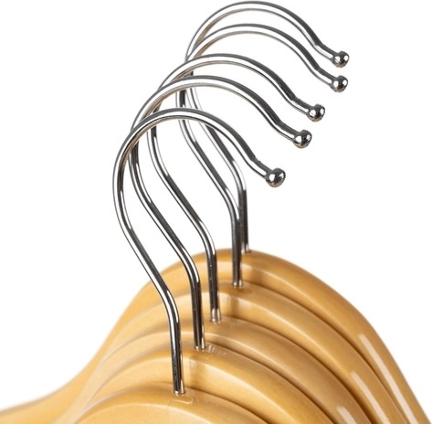 Komplektā 10 koka pakaramie apvieno mūžīgu dizainu un augstu izturību. Pakaramie ir izgatavoti no masīvkoka un aizsargāti ar bezkrāsainu laku, kas izceļ dabīgo koka zīmējumu, vienlaikus pasargā no mitruma un sīkiem skrāpējumiem. Jūsu garderobei tie piešķirs tīrību, kārtību un elegantu izskatu.