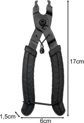 BIGSTREN ātrās savienotājsaites knaibles velosipēda ķēdei ir uzticams palīgs ātrai velosipēda apkopei un servisam. Izturīgā konstrukcija no oglekļa tērauda labi tiek galā arī ar netīrām vai sarūsējušām savienotājsaitēm, bet precīzie žokļi nodrošina drošu satvērienu un tīru darbu. Rīks paredzēts gan atvēršanai, gan aizvēršanai ātrajai savienotājsaitei, tāpēc ķēdes demontāžu un montāžu paveiksiet acumirklī.