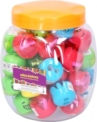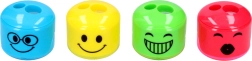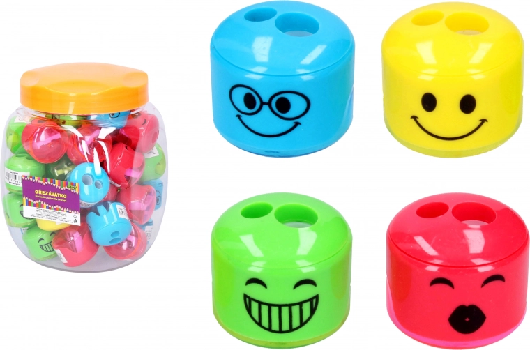 Praktisks un rotaļīgs divu zīmuļu asināmais ar iebūvētu tvertni nodrošina tīru un ātru asināšanu bez nekārtības. Pateicoties sejiņas motīvam un kompaktajiem izmēriem, tas ir ideāli piemērots skolai un birojam. Pieejams 4 krāsu variantos un der standarta un tievākiem zīmuļiem.