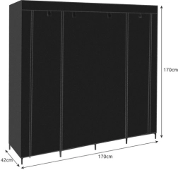 Tekstila skapis ar izmēriem 170 x 42 x 170 cm ir ideāls risinājums tiem, kas meklē praktisku un pārvietojamu uzglabāšanas vietu. Pateicoties vieglam materiālam, to ir viegli pārvietot, un tas lieliski der telpās ar ierobežotu platību.
