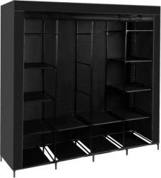 Ruhhy tekstila skapis nodrošina daudz vietas, pateicoties 14 plauktiem un 2 stieņiem apģērbu piekāršanai.