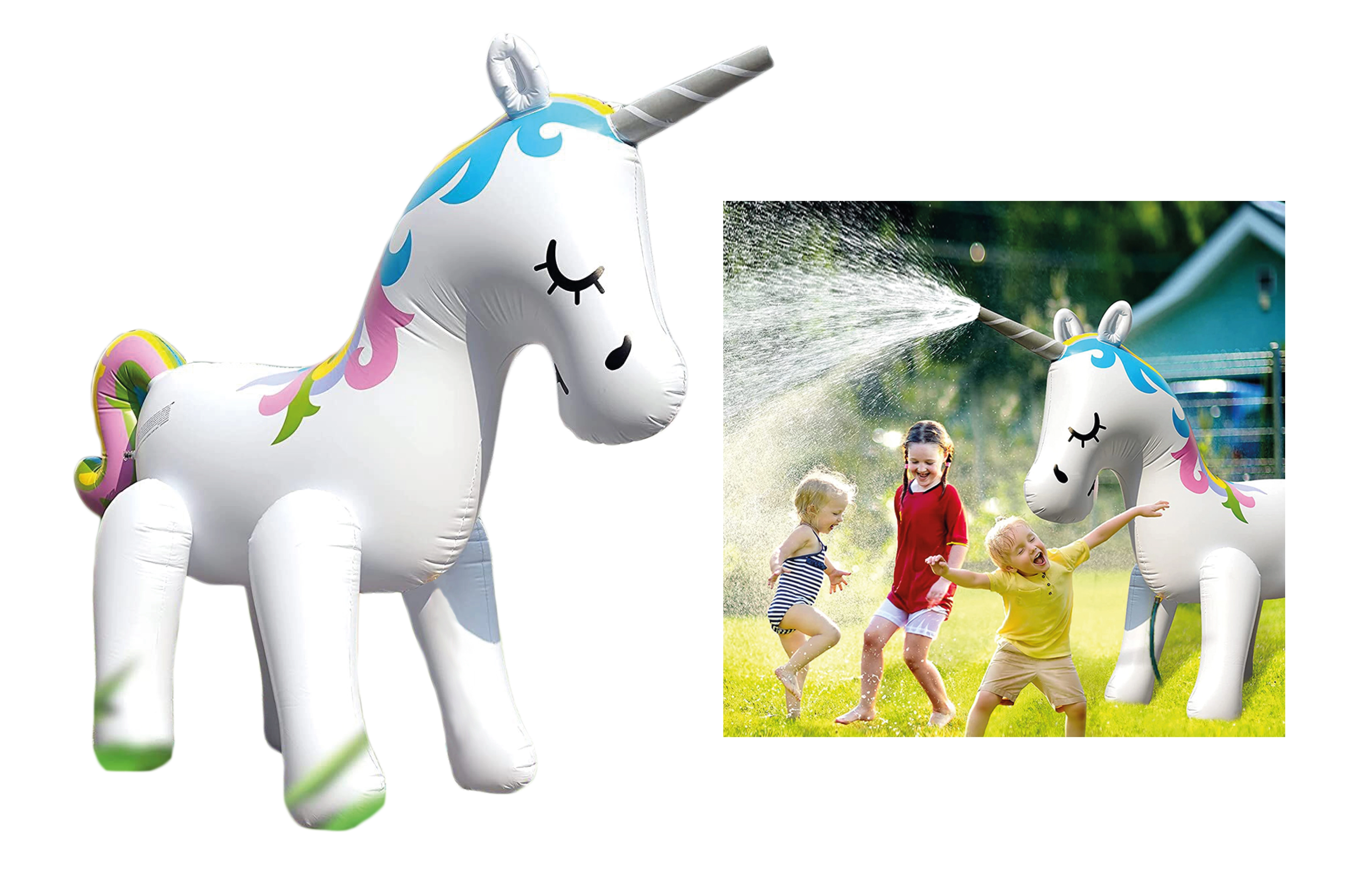 Šis mīlīgais uzpūšamais vienradzis pārvērtīs dārzu burvīgā ūdens rotaļu laukumā. Pateicoties ūdens šļakstīšanas funkcijai, tas ir ideāli piemērots karstām dienām – pietiek pievienot ūdeni (ja šī funkcija ir atbalstīta), un bērni izbaudīs daudz atsvaidzinošas jautrības. Izturīgais izpildījums un ietilpīgie izmēri 220 × 160 × 80 cm nodrošina stabilitāti un ērtu lietošanu.