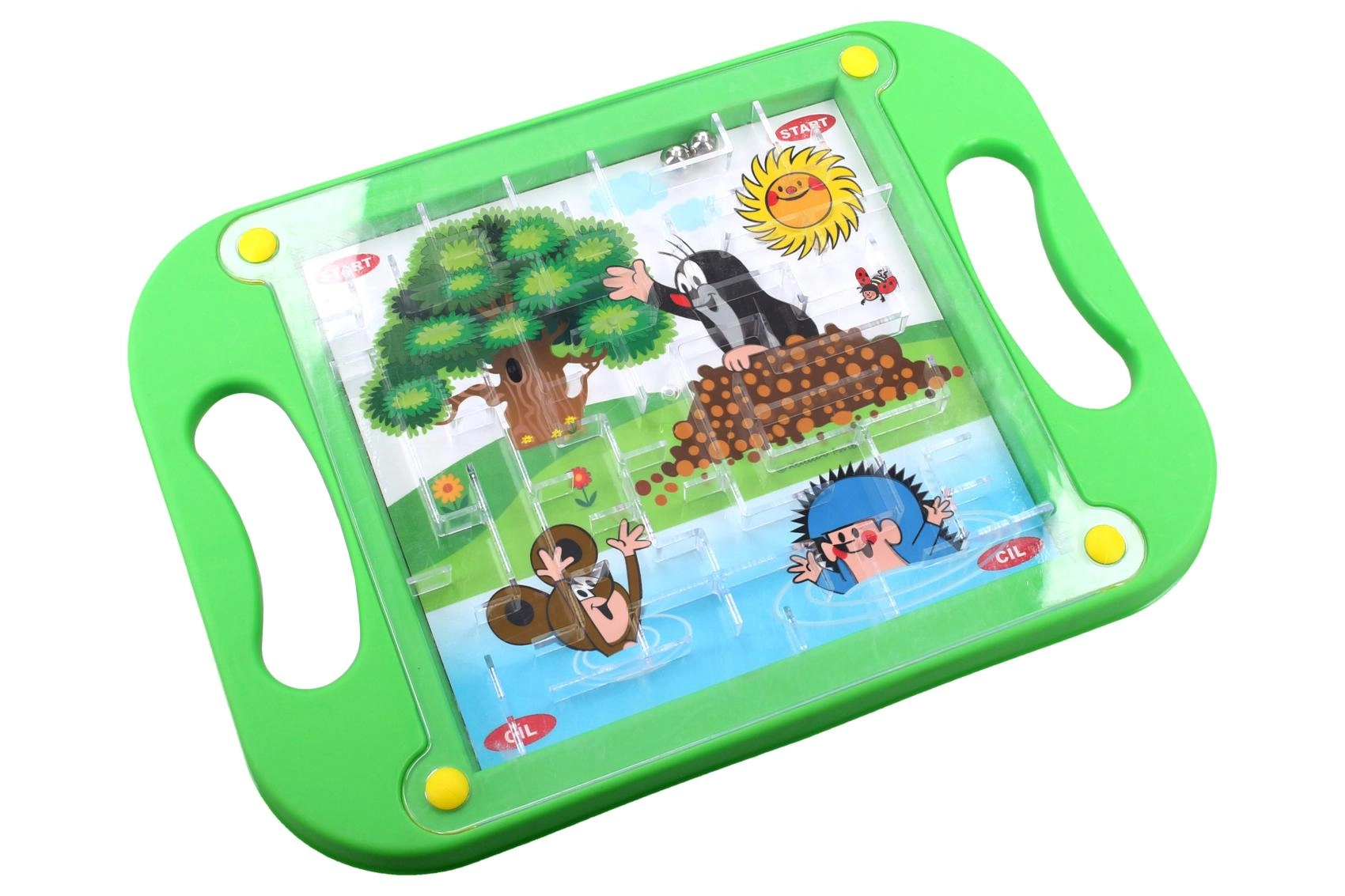 Motorikas labirints ar iemīļoto tēlu KURMĪTI piedāvā gudru izklaidi bērniem. Spēle balstās uz precīzu slīpināšanu un lodīšu virzīšanu iedobēs, tā attīstot bērnu koncentrēšanos un acu–roku koordināciju.