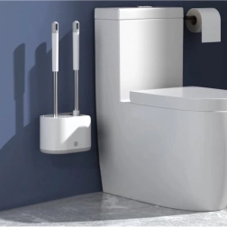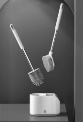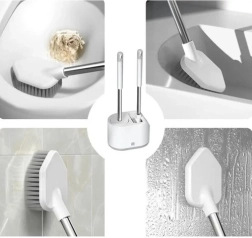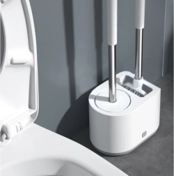 RUHHY komplektā ir divas galviņas nevainojami tīrai tualetei bez piepūles. Apaļā TPR (termoplastiskā gumija) ir elastīga, nesaskrāpē keramiku un viegli aizsniedz zem apmales. Plakanā trīsstūrveida galviņa no izturīga PP tiek galā ar nosēdumiem grūti pieejamās vietās un stūros.