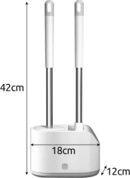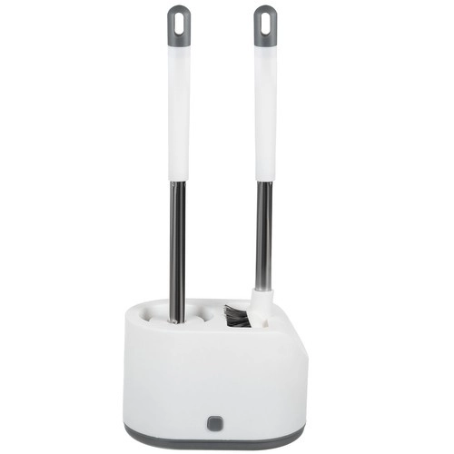 Praktisks 2 RUHHY tualetes birstu komplekts ikdienas tīrībai un higiēnai. Apvieno apaļu TPR galviņu saudzīgai tīrīšanai un plakanu smailu galviņu stūriem un malām. Pateicoties pilienu savākšanas traukam ar pogu un sienas turētājam, ietaupa vietu un uztur vannasistabu sausu. Izturīgie materiāli PP, nerūsējošais tērauds, TPR un PS nodrošina ilgu kalpošanas laiku.