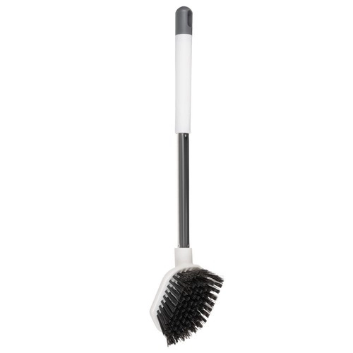 Apaļā TPR galviņa ir elastīga un saudzīga pret keramiku, plakanā trīsstūrveida PP galviņa ar asu galu iztīra pat grūti pieejamus stūrus un malas zem poda apmales.