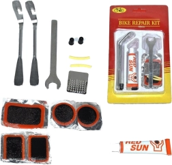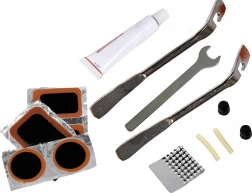 Ietver riepu noņēmējus, atslēgu riteņiem un citus svarīgus instrumentus, kas atvieglo remontu ceļā.