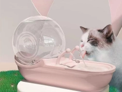 - Plastmasas strūklaka ar caurspīdīgu tvertni, piemērota kaķiem un maziem suņiem