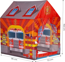 Bērnu telts Ugunsdzēsēju stacija iepriecinās visus mazos varoņus. Reālistiskās ugunsdzēsēju auto un aprīkojuma apdrukas iedrošina bērnus uz lomu spēlēm un patstāvīgām rotaļām. Viegla, tomēr stabila konstrukcija un izturīgs poliestera pārklājums nodrošina ērtu pārvietošanu un drošu lietošanu gan mājās, gan ārā.