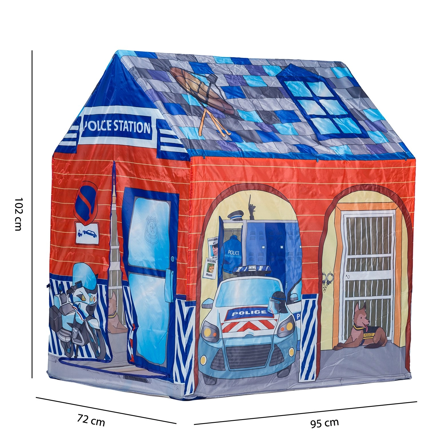 Bērnu telts policijas stacijas stilā pārvērtīs jebkuru istabu vai dārzu par vietu, kas pilna ar fantāziju. Tā piedāvā ātru un vienkāršu salikšanu, vieglu un drošu konstrukciju un ir piemērota spēlēm mājās un ārā. Lieliska izvēle bērniem no 3 gadu vecuma, kuri mīl lomspēles kā policisti.