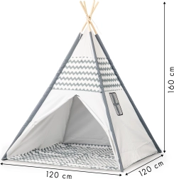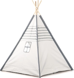Stilīga bērnu vigvama telts ECOTOYS pārvērš jebkuru istabu vai dārzu par drošu patvērumu spēlēm un fantāzijai. Tā piedāvā tekstila grīdu, rullējamas aizveramas durvis, viegli kopjamu pārsegu un ātru montāžu. Pateicoties izturīgai koka konstrukcijai, telts ir piemērota lietošanai telpās un ārā un nodrošina stundām ilgu izklaidi vienam vai vairākiem bērniem.