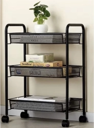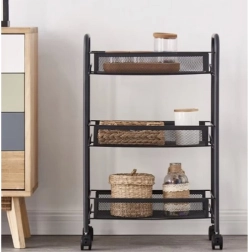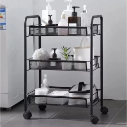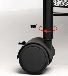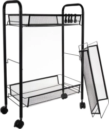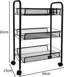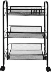 Uzturiet kārtību stilīgi. Šis kompaktais, taču stabilais plaukts no pulverkrāsotas dzelzs ir paredzēts ikdienas lietošanai. Atvērtie groza tipa plaukti nodrošina pārskatāmību un gaisa cirkulāciju, tāpēc tas ir ideāli piemērots pārtikai, kosmētikai un tīrīšanas līdzekļiem. Četri kvalitatīvi ritenīši nodrošina vienmērīgu pārvietošanu, no kuriem diviem ir integrēta bremze drošai fiksācijai vietā.