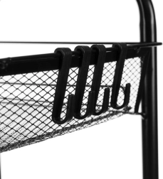 Pulverkrāsota dzelzs ir izturīga pret koroziju un ikdienas nolietojumu. Atvērtais sieta dizains nodrošina pārskatāmību un gaisa cirkulāciju higiēniskai priekšmetu glabāšanai.