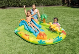 Šis piepūšamais baseiniņš ar oriģinālu dinozauru dizainu sniedz daudz izklaides dārzā. Bērni izbaudīs slīdēšanu un rotaļas ar dinozauru figūriņām, kamēr iebūvētā palmiņa-smidzinātājs piešķirs papildu ūdens veldzi.
