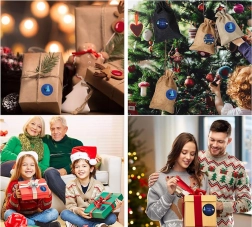 Satur līdz pat 500 uzlīmēm ar astoņiem dažādiem Ziemassvētku motīviem, kas piešķir katram iesaiņojumam svētku noskaņu.