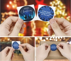 Šis dekoratīvo uzlīmju komplekts piedāvā plašu Ziemassvētku motīvu klāstu, piemēram, ziemeļbriežus, eglītes un svētku vēlējumus. Katrs rullis satur 500 uzlīmes ar astoņiem dažādiem dizainiem, nodrošinot pietiekami daudz dekorāciju visiem svētkiem.
