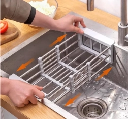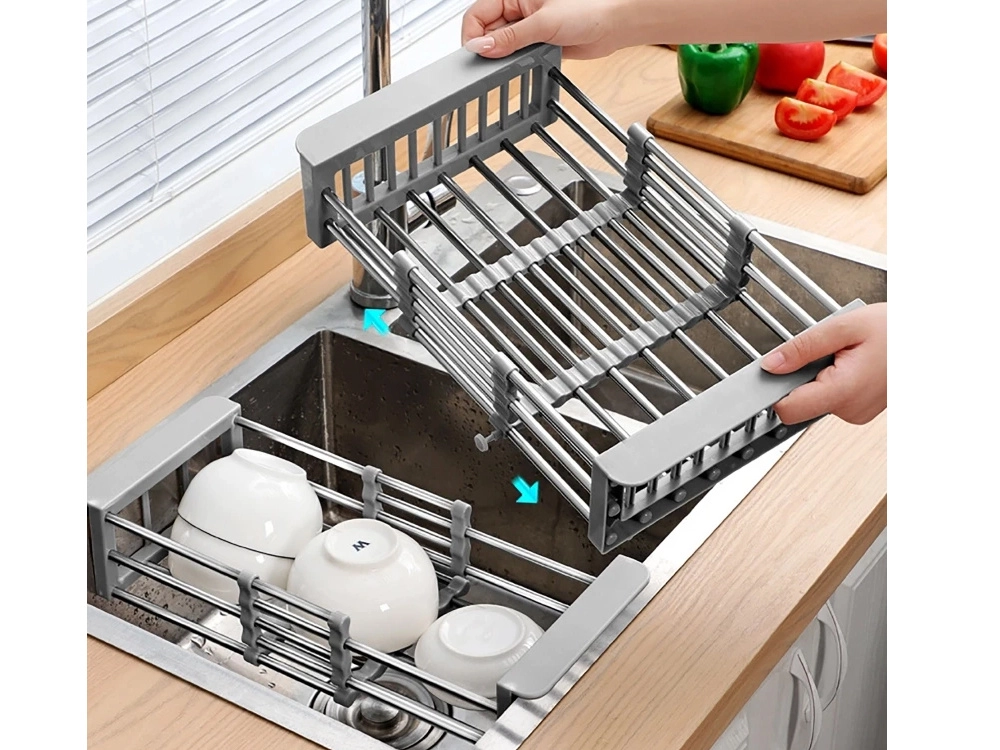 Šis izvelkamais notecinātājs virs izlietnes paplašina darba virsmu un padara ikdienas virtuves darbus efektīvākus. Pateicoties teleskopiskajai konstrukcijai, tas pielāgojas lielākajai daļai izlietņu un ļauj ērti skalot un žāvēt augļus, dārzeņus un traukus tieši virs izlietnes vannas.
