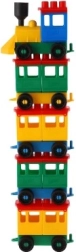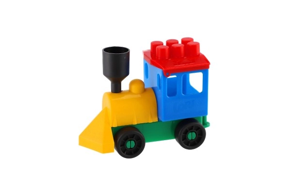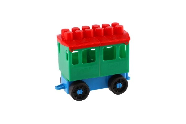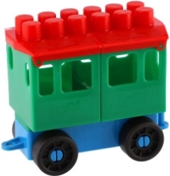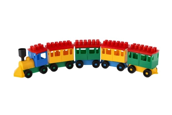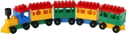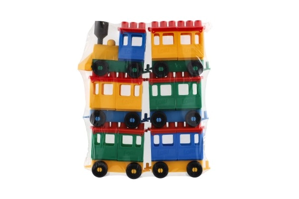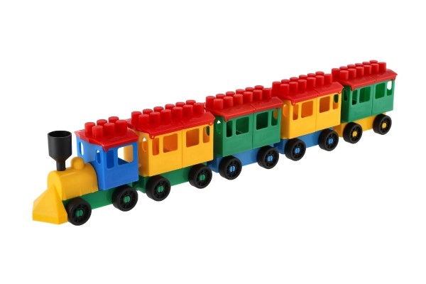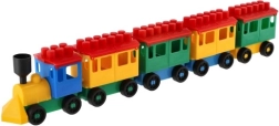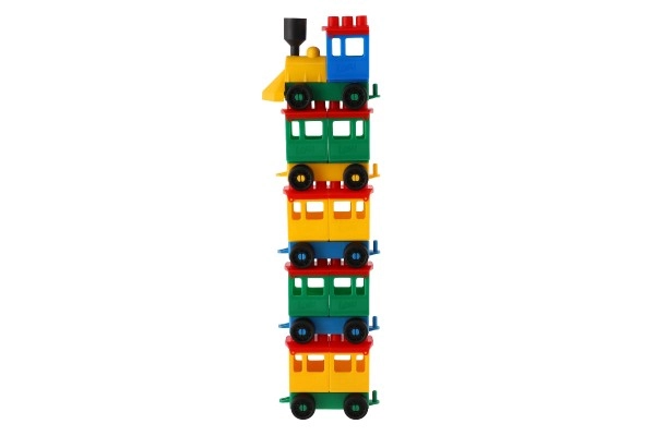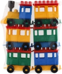 Konstruktors piedāvā spilgti krāsotu lokomotīvi un piecus vagoniņus. Krāsas piesaista uzmanību un veicina bērnu radošumu.