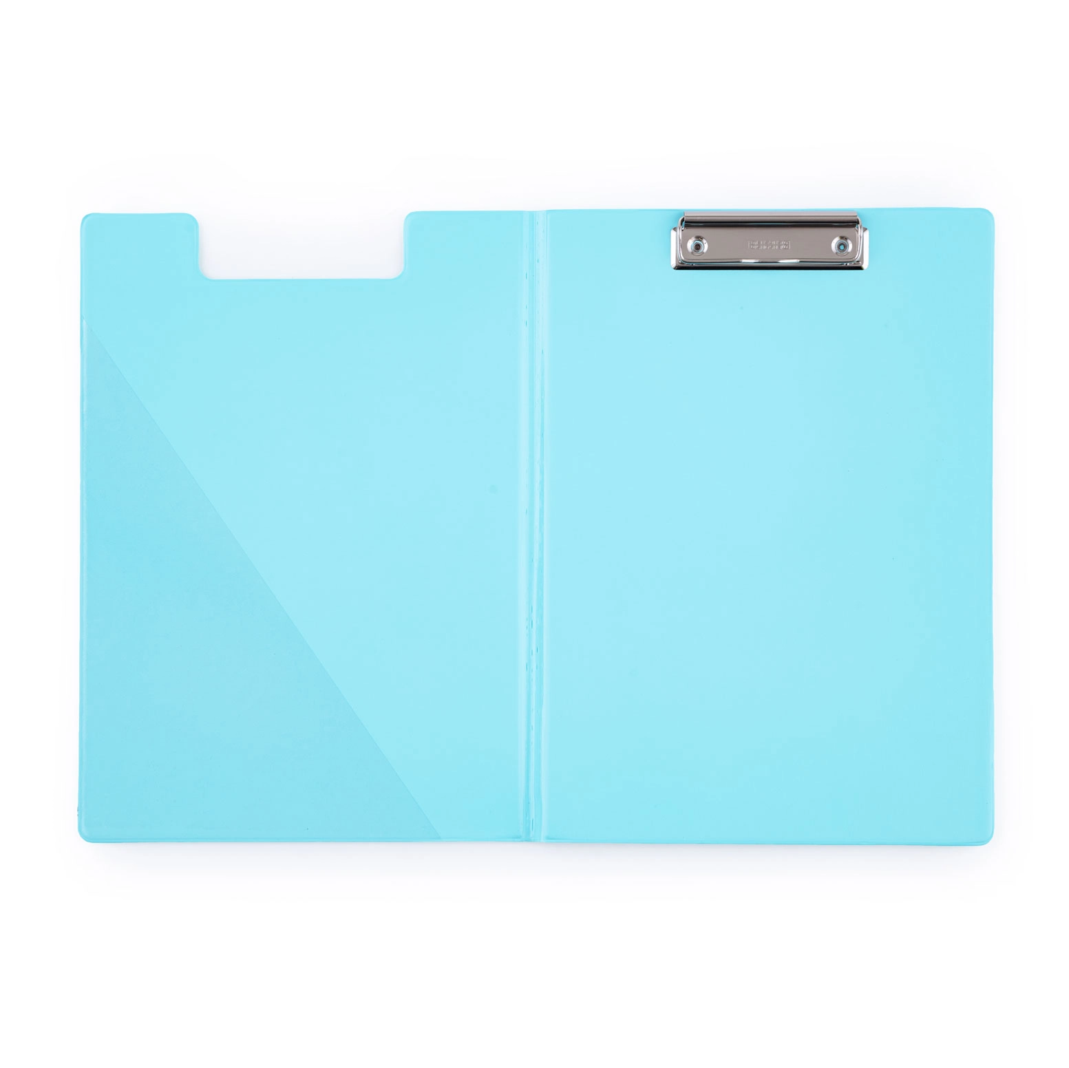 Eleganta un funkcionāla Pastelini A4 plastmasas dubultmape stilīgā zilā krāsā, ideāli piemērota ikdienas lietošanai birojā un skolā. Šī aizveramā rakstāmvirsma ir aprīkota ar metāla klipsi, kas droši notur dokumentus savā vietā.