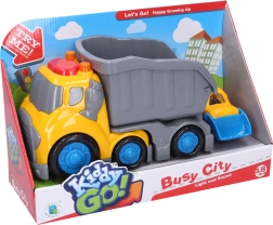 Ar šo Kiddy būvniecības transportlīdzekļu komplektu bērni izbaudīs stundām ilgu radošu izklaidi. Pašizgāzējam ar piekabi ir kustīgas durvis un efekti, ko aktivizē poga uz kabīnes jumta, savukārt buldozers ir aprīkots ar kustīgu kausu iekraušanai un izkraušanai. Pateicoties brīvripojošiem riteņiem, transportlīdzekļus ir viegli vadīt pat pašiem mazākajiem vadītājiem.